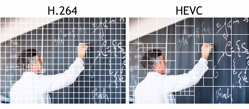 Когда видео кодируется в формате H.264, у такого блока размер 16 на 16 пикселей (всего 256). А когда применяешь HEVC, размер данного блока может составлять 64 на 64 пикселей (всего 4096).