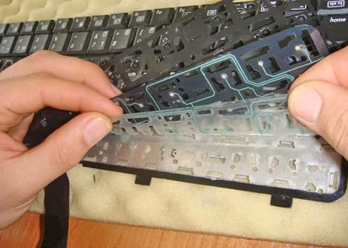 Когда элемент присоединен неплотно или подключен задом наперед, то никаких проблем нет. А вот когда дорожки оборваны, тогда понадобится восстановить шлейф клавиатуры. Это трудоемкая работа.