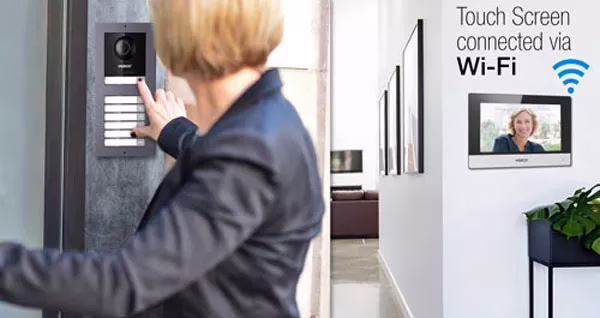 Для того чтобы обеспечить дополнительные меры защиты, нужно еще организовать второй уровень контроля. Непосредственно на входной двери. Здесь с помощью второй вызывной панели и камеры видеонаблюдения можно идентифицировать намерения посетителя в полном смысле слова на подступах к дому.