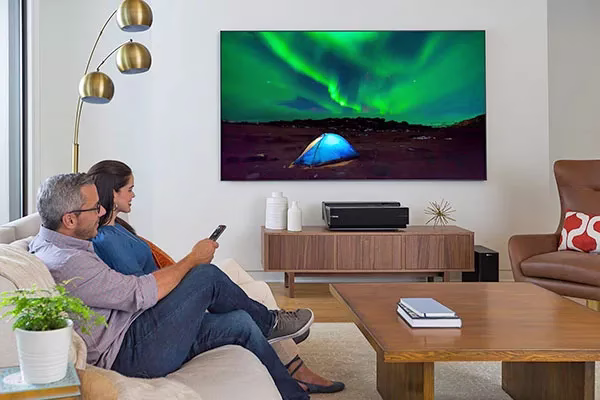 ВАЖНО! Если у вас модель на 100 дюймов, вам понадобится проектор и экран. Но не только. Еще желательно, чтобы у вас был саундбар без проводов. Этого набора вполне хватит для того, чтобы иметь виртуальный пятиканальный звук и обустроить гигантский кинотеатр в квартире или в доме.