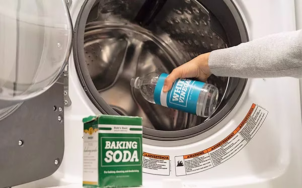 Если чистить стиральную машину, используя девятипроцентный столовый уксус, то он сможет удалить даже сильную накипь, плесень и избавить от неприятного запаха. Для того чтобы очистить барабан от накипи, нужно разбавить уксус водой в пропорции 1:10. Скажем, на 200 мл уксуса берем 2 л воды.Приготовленный разбавленный уксус заливают в отсек для стирального порошка. Включаем режим стирки на максимальной температуре примерно на 1-1,5 часа без отжима. Режим дополнительного полоскания должен быть включен.