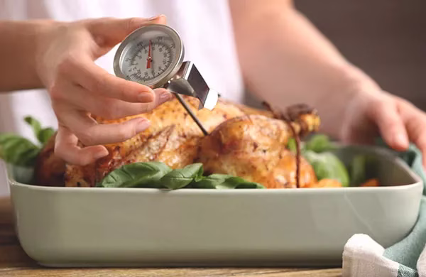 - Нужно знать, к какой температуре стремишься. Пищевые продукты должны быть безопасны. И потому красное мясо, свинина и рыба должны быть на уровне 145°С. А домашняя птица, например, курица и индейка, должны начинаться с 165°С.