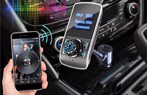 Большое распространение получили FM-передатчики, поддерживающие Bluetooth. Их подключают к розетке прикуривателя или к розетке 12 В постоянного тока, а она имеется в любом автомобиле. При подключении передатчика к этой розетке он начинает питаться от АКБ авто. И это помогает питать технологию беспроводной связи.У FM-передатчика есть встроенный Bluetooth. Его подключают к телефону. И тогда идет передача музыки с телефона на FM-передатчик. Он осуществляет прием аудиосигнала от приемника Bluetooth и посылает его по пустому радиоканалу.