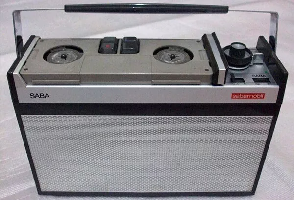Постепенно качество записи-воспроизведения катушечных магнитофонов стало намного лучше. И вновь напрашивалась идея о том, как бы разместить магнитофона в автомобиль? Проблема была в том, что не предоставлялась возможность заменить магнитофонную катушку при движении автомобиля. А ведь это нужно было делать одной рукой. И тут нужно было придумать что-то оригинальное.В 1964 году фирма SABA из Германии предложила неординарное решение данной проблемы. Катушки с магнитной лентой додумались расположить в специальный контейнер. Его назвали Sabamobil. Специально для данного контейнера с катушками изготовили магнитолу Sabamobil TK-R12. Именно она и стала первой на планете автомобильной магнитолой.