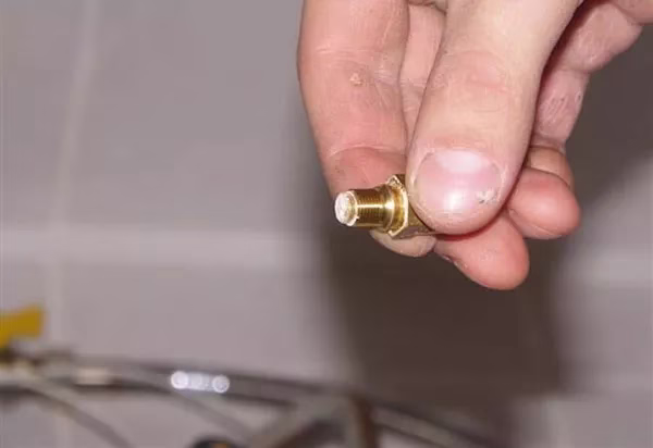 Затем тонкой иглой осторожно прочищаем отверстия жиклеров и устанавливаем их на место. Если все проблемы из-за отверстий жиклеров, которые забиты, то после того, как вы их прочистите, никаких хлопков при включении колонки не будет.