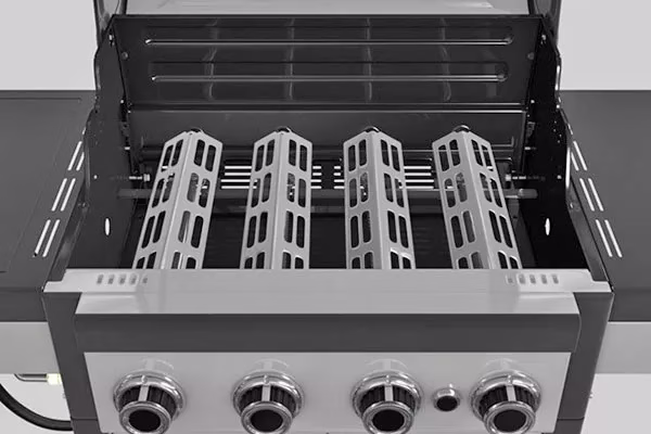 Пластины-испарители – это защита пищи от пригорания. Именно они создают эффект барбекю. Благодаря ним жар равномерно распространяется по всей плоскости решетки, а не только над горелкой.