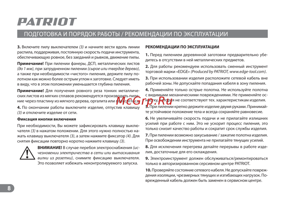 Patriot RS 505 [8/12] Подготовка и порядок работы рекомендации по эксплуатации