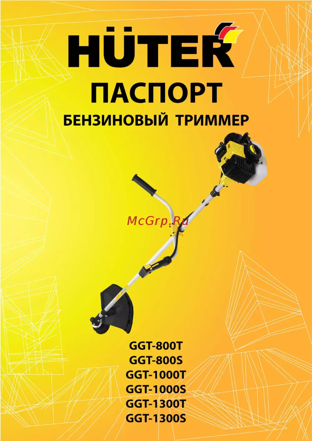 - Свидетельство о приемке бензиновый триммер huter серии ggt _________________________ _____________________________________________________________ признан годным для эксплуатации дата продажи _____________________ я покупатель представитель фирмы ________________________________ с условиями эксплуатации ознакомлен _____________________________ p.14