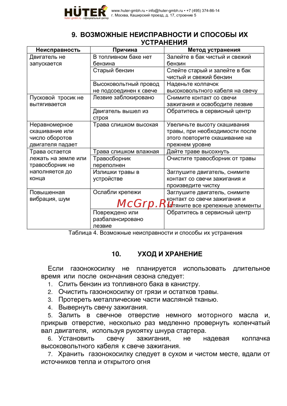 Huter GLM-6.0 ST — возможные неисправности газонокосилки и их устранение [18/24]