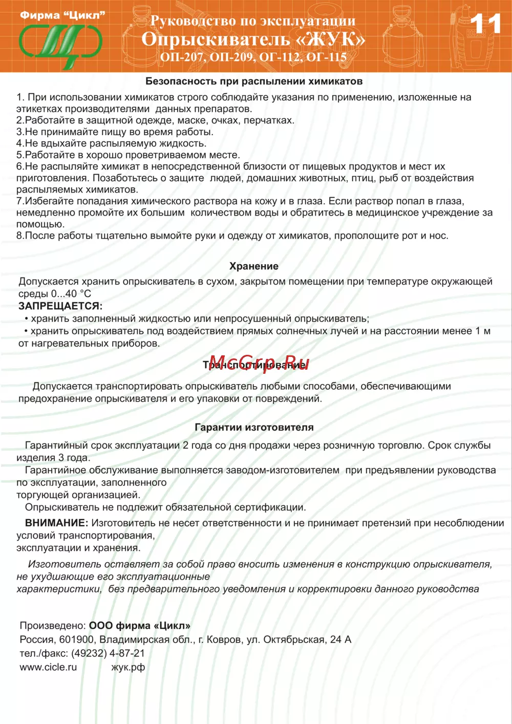 Жук ОП-207 5 лРуководство по эксплуатации -