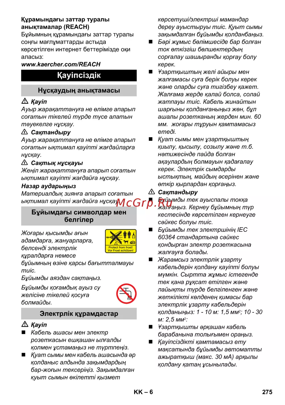 Karcher K 5 1.180-633 [275/286] Нұсқаудың анықтамасы