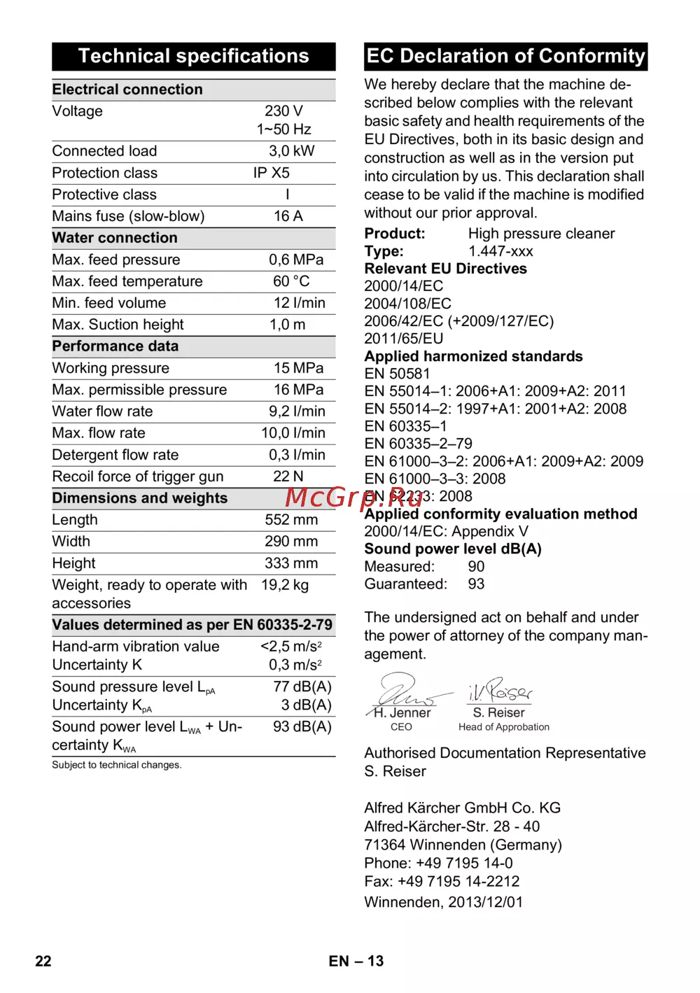 Karcher K 7 Compact 1.447-002.0 [22/278] Technical specifications