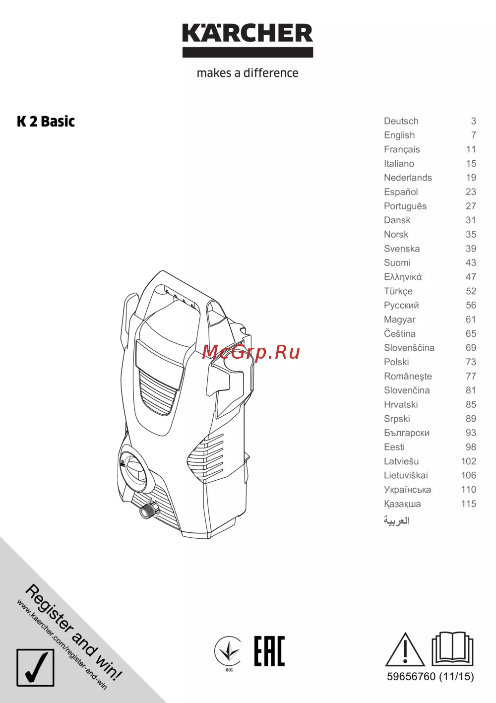 Karcher K 2 basic (1.673-155) Руководство по эксплуатации онлайн