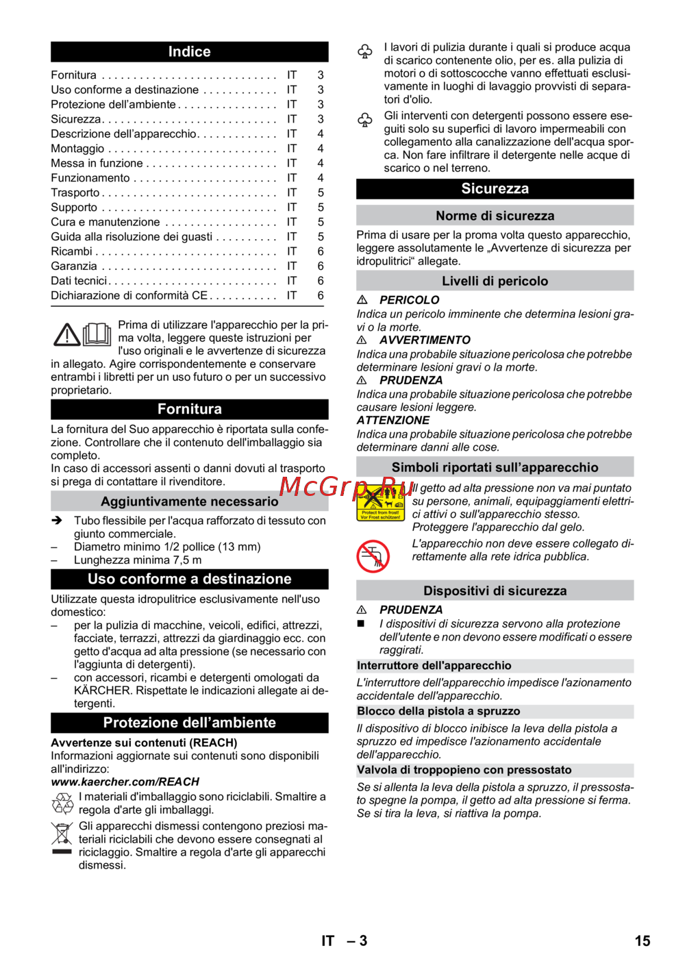 KÄRCHER. Rispettate le indicazioni allegate ai de-