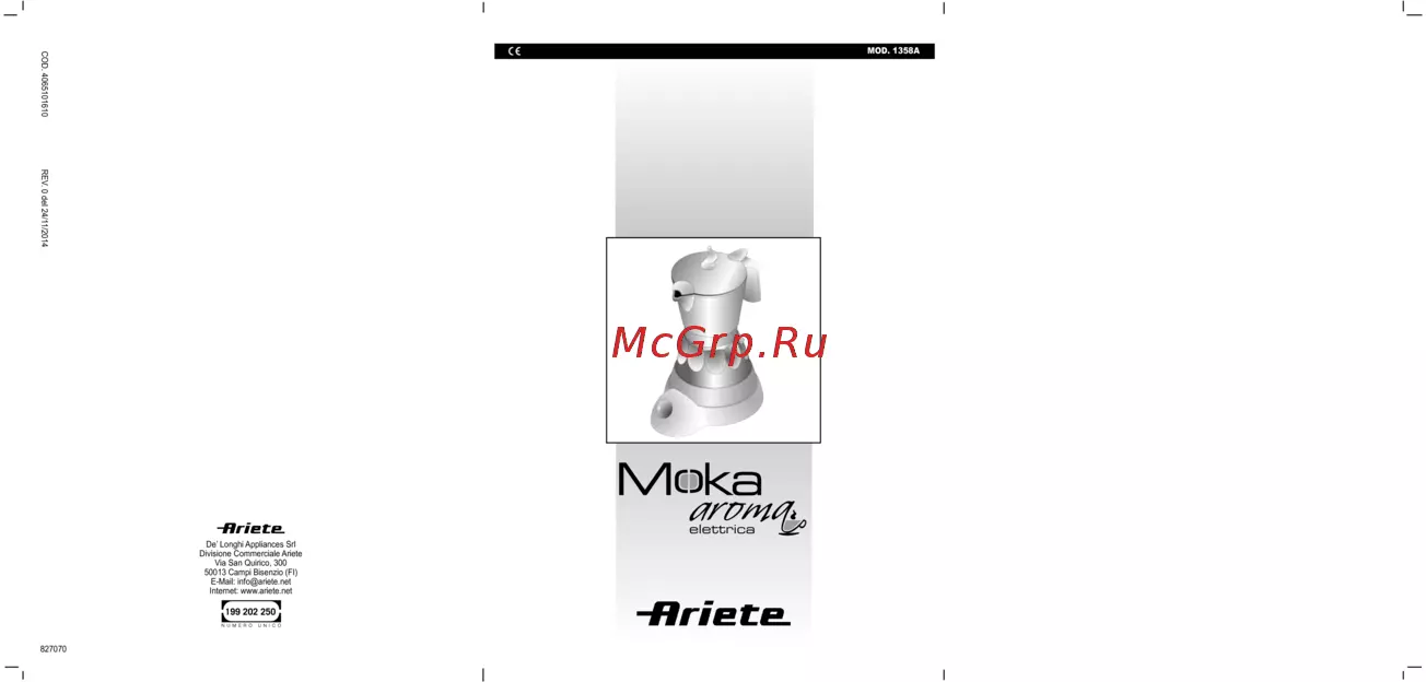 Ariete Moka Aroma 1358Инструкция по эксплуатации -