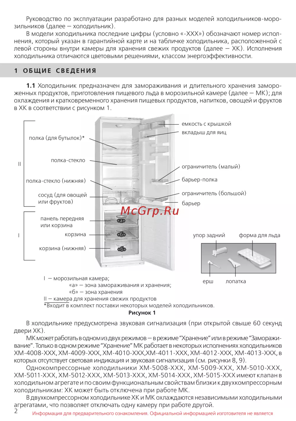 - Холодильник предназначен для замораживания и длительного хранения заморо женных продуктов приготовления пищевого льда в морозильной камере далее мк для охлаждения и кратковременного хранения пищевых продуктов напитков овощей и фруктов в хк в соответствии с рисунком 1 p.2