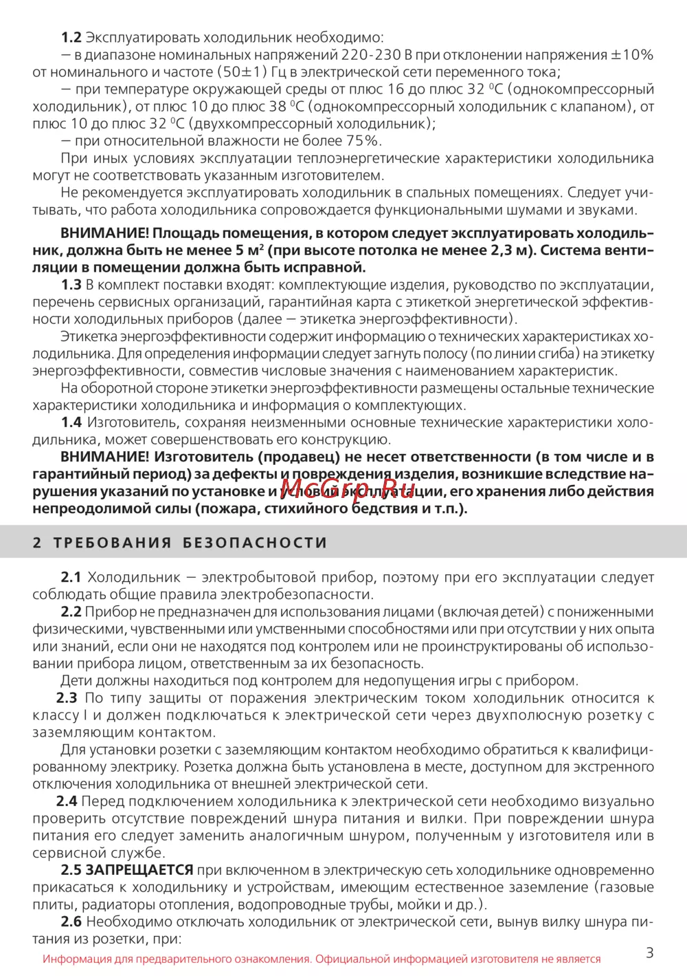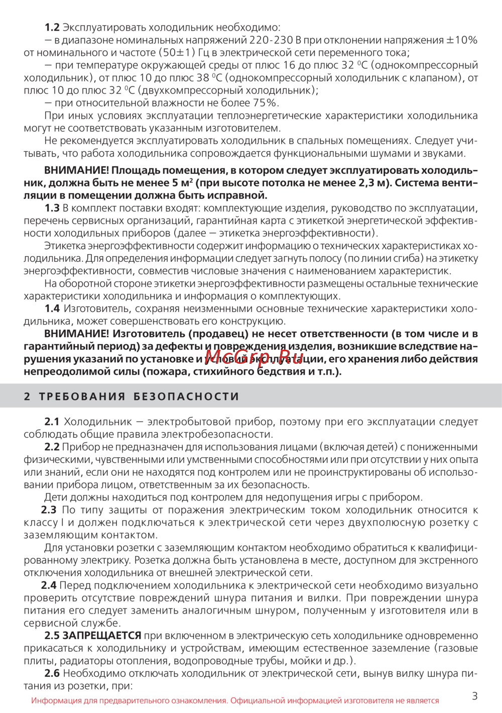 2.5 ЗАПРЕЩАЕТСЯ при включенном в электрическую сеть холодильнике одновременно