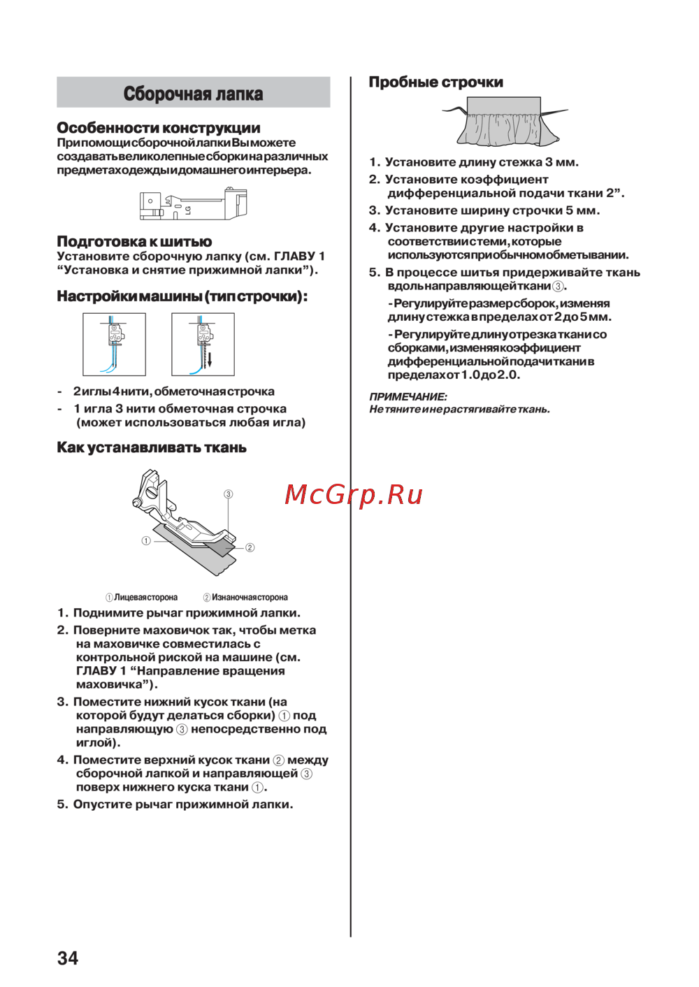 дифференциальной подачи ткани 2”.