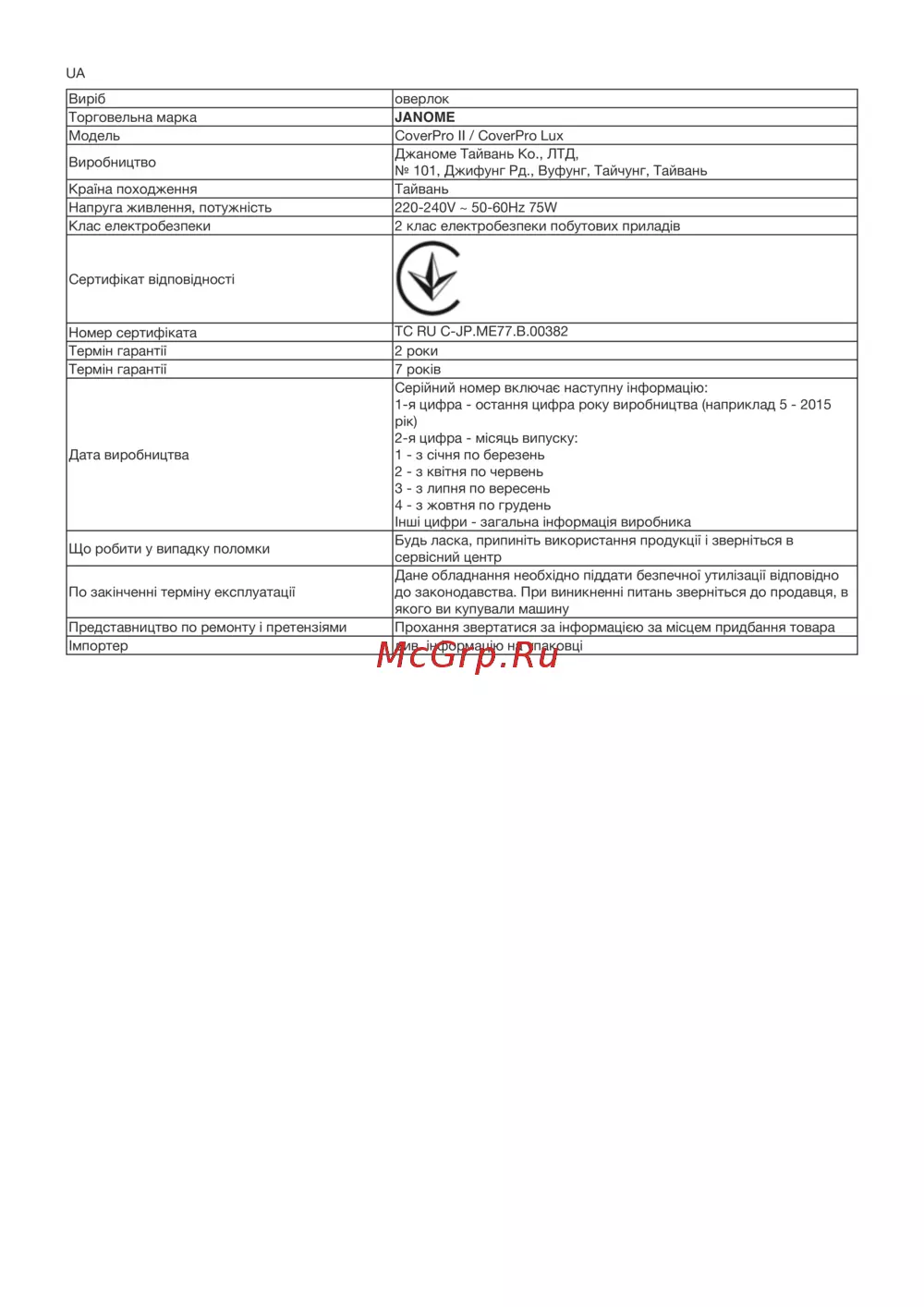 Janome COVERPRO II (COVER PRO 2 CP)Инструкция по эксплуатации -