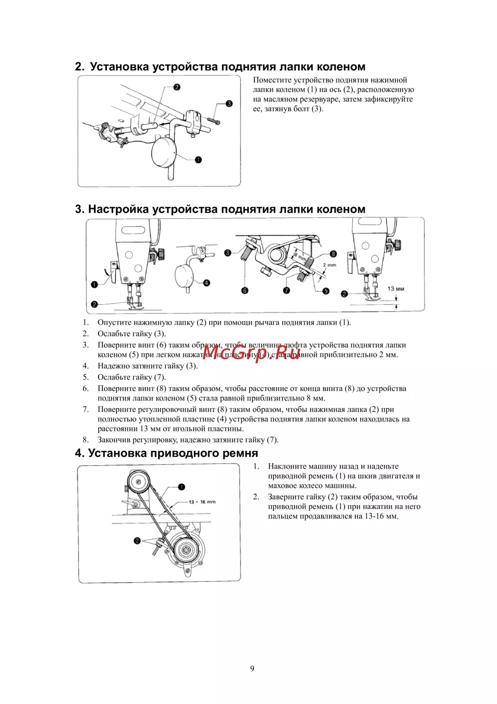 Brother SL-1110-5 [9/27] Настройка устройства поднятия лапки коленом