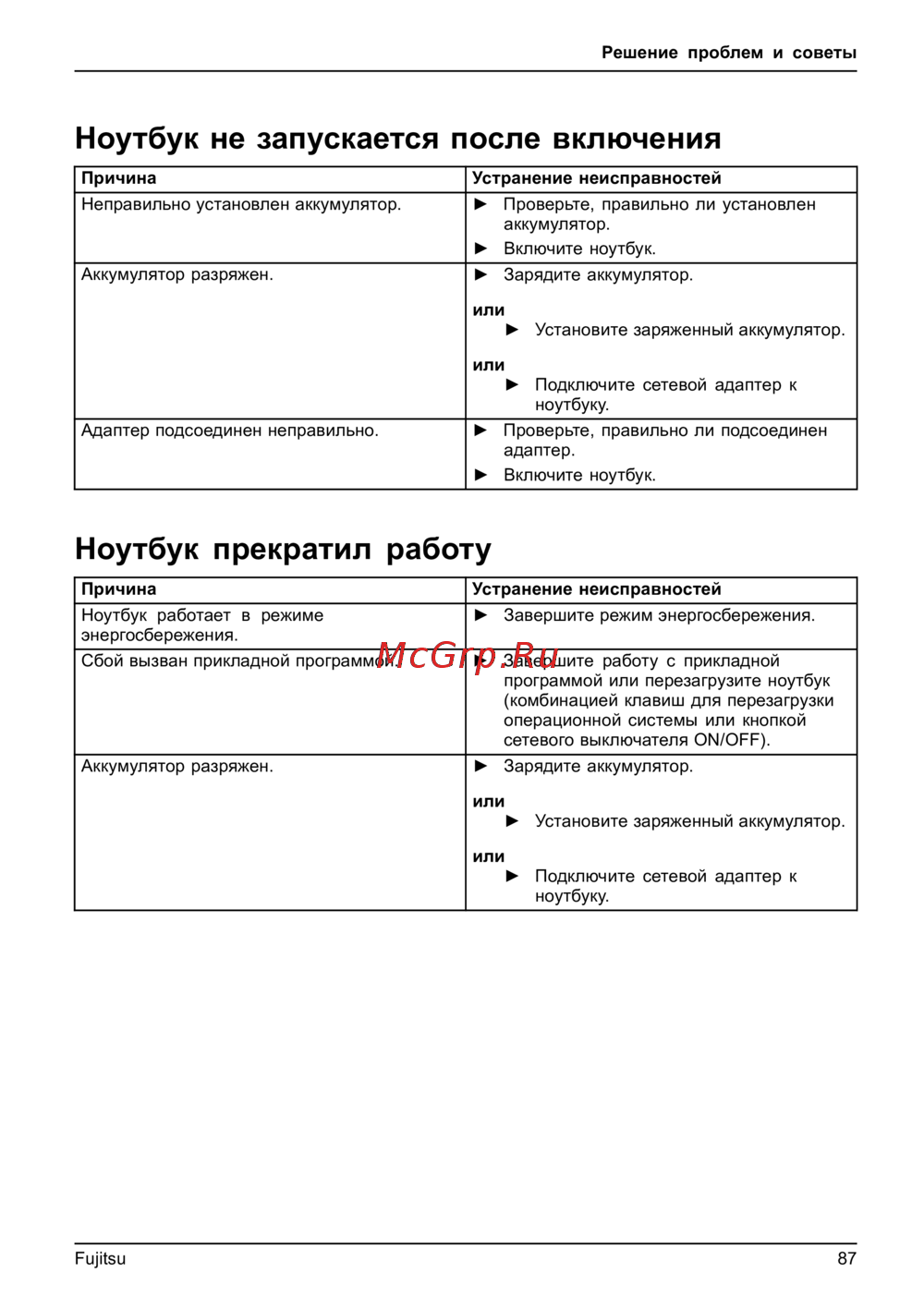 - Решение проблем и советы p.87
