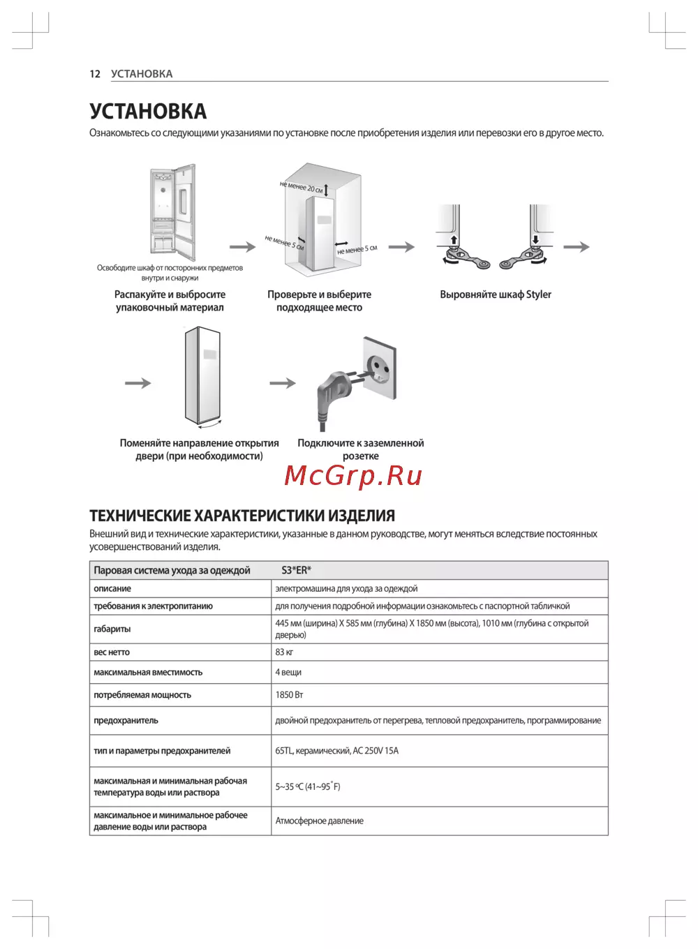 LG Styler S3WER [12/48] Проверьте и выберите подходящее место распакуйте и выбросите упаковочный материал