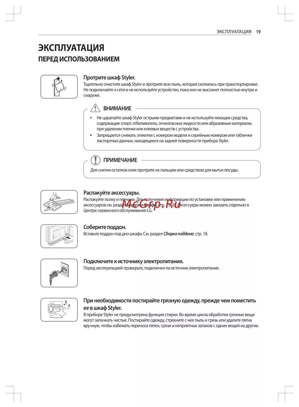 LG Styler S3WER [19/48] При необходимости постирайте грязную одежду прежде чем поместить ее в шкаф styler