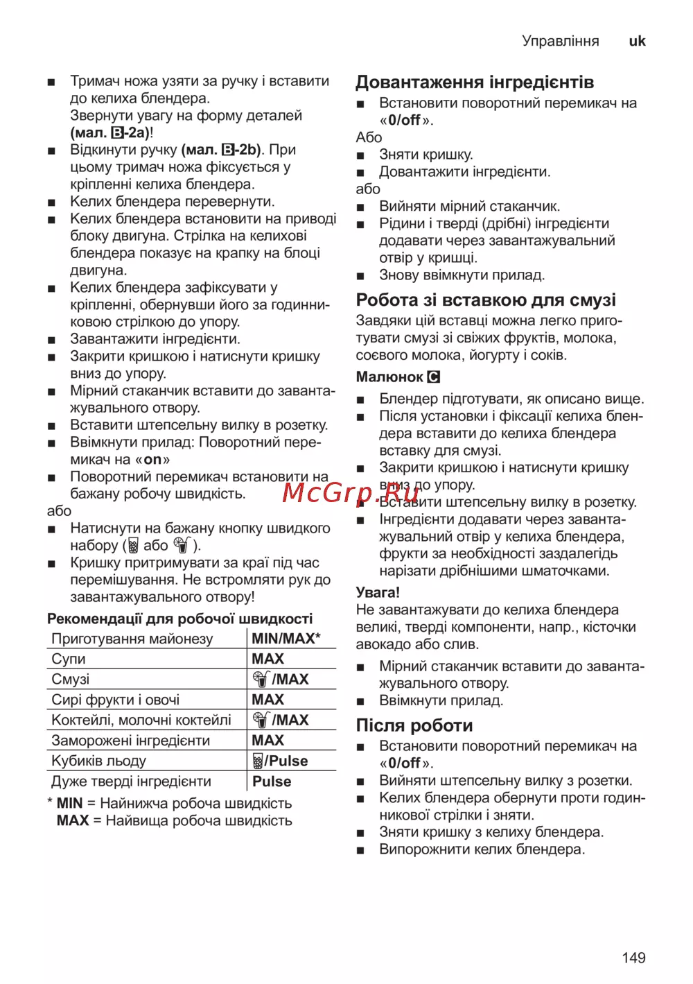![Bosch MMB43G2 [149/192] Робота зі вставкою для смузі](/views2/2005827/page149/bg95.png)
