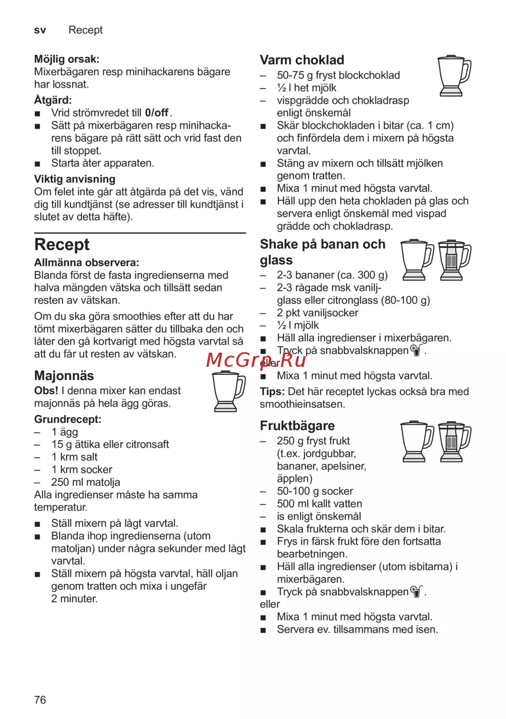 Obs! I denna mixer kan endast