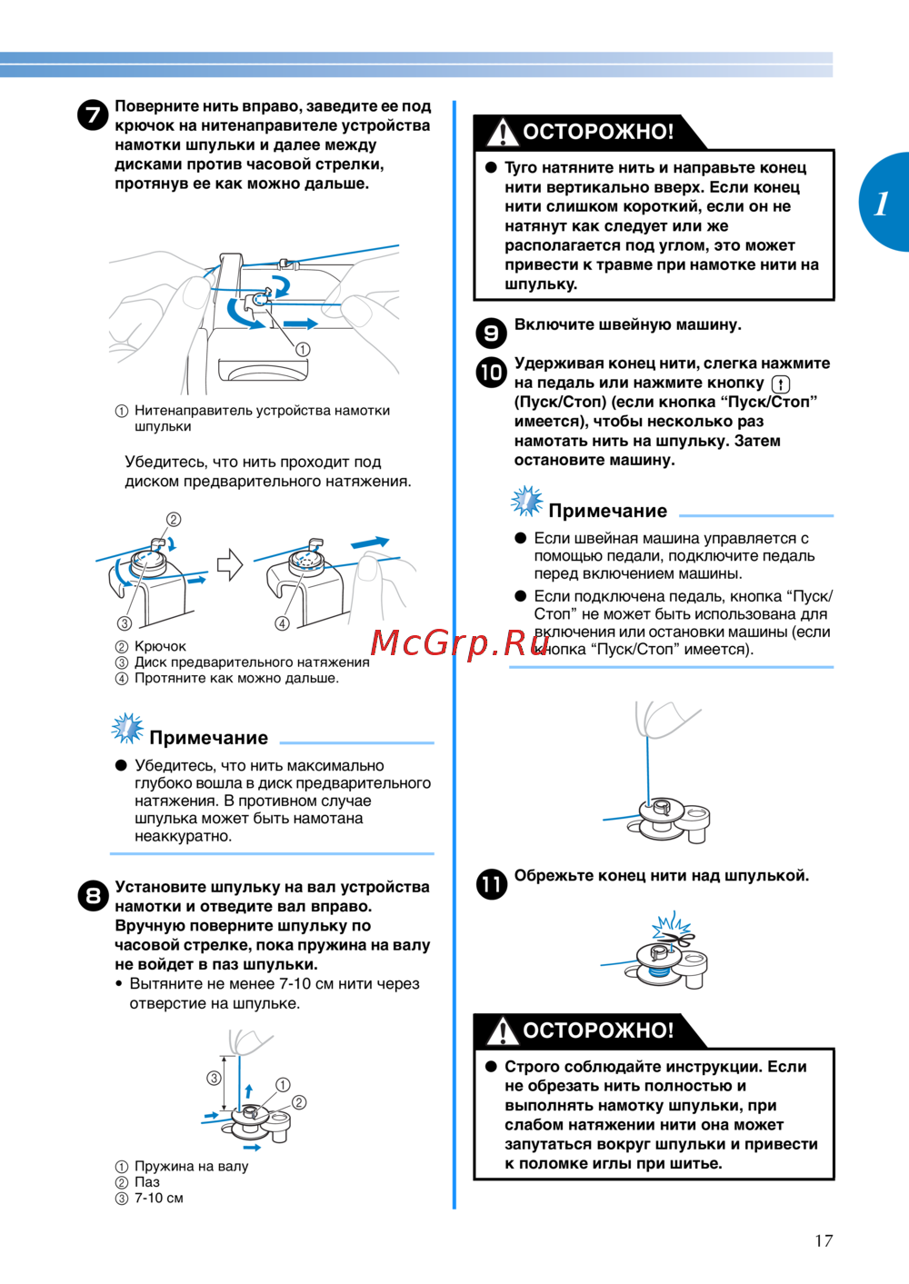 - В противном случае при случайном нажатии педали или кнопки пуск стоп машина начинает шить и может нанести травму p.70