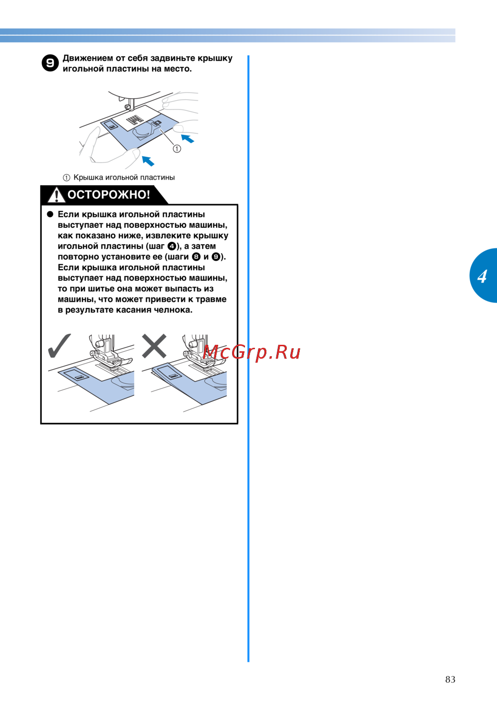 - Ткань застряла в машине и ее невозможно извлечь p.91
