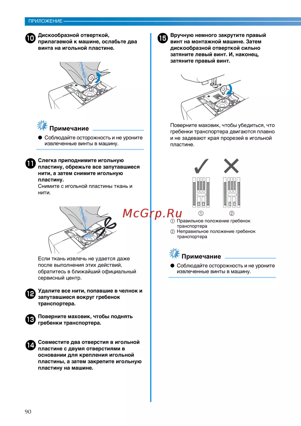 - Ткань застряла в машине и ее невозможно извлечь p.91