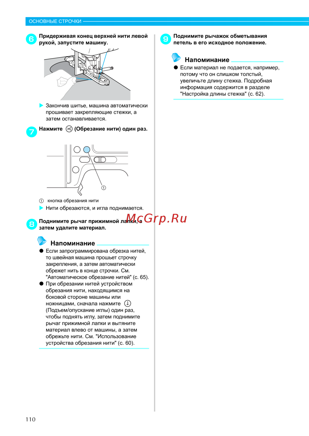 - Убедитесь в том чтобы игла была поднята во время движения пялец если игла будет находиться внизу она может сломаться и стать причиной травм p.159