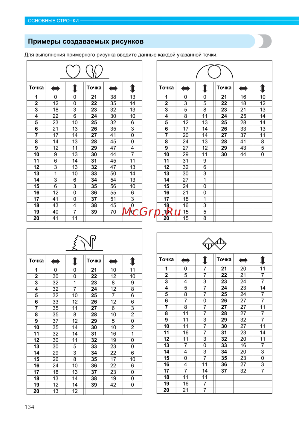 Для выполнения примерного рисунка введите данные каждой указанной точки.