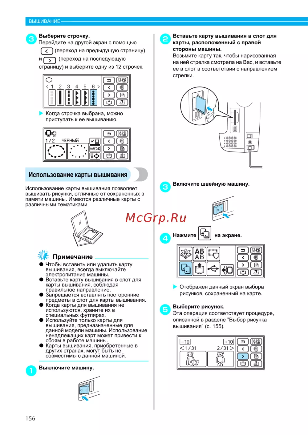 - Пересылка рисунков вышивания с компьютера на машину p.173