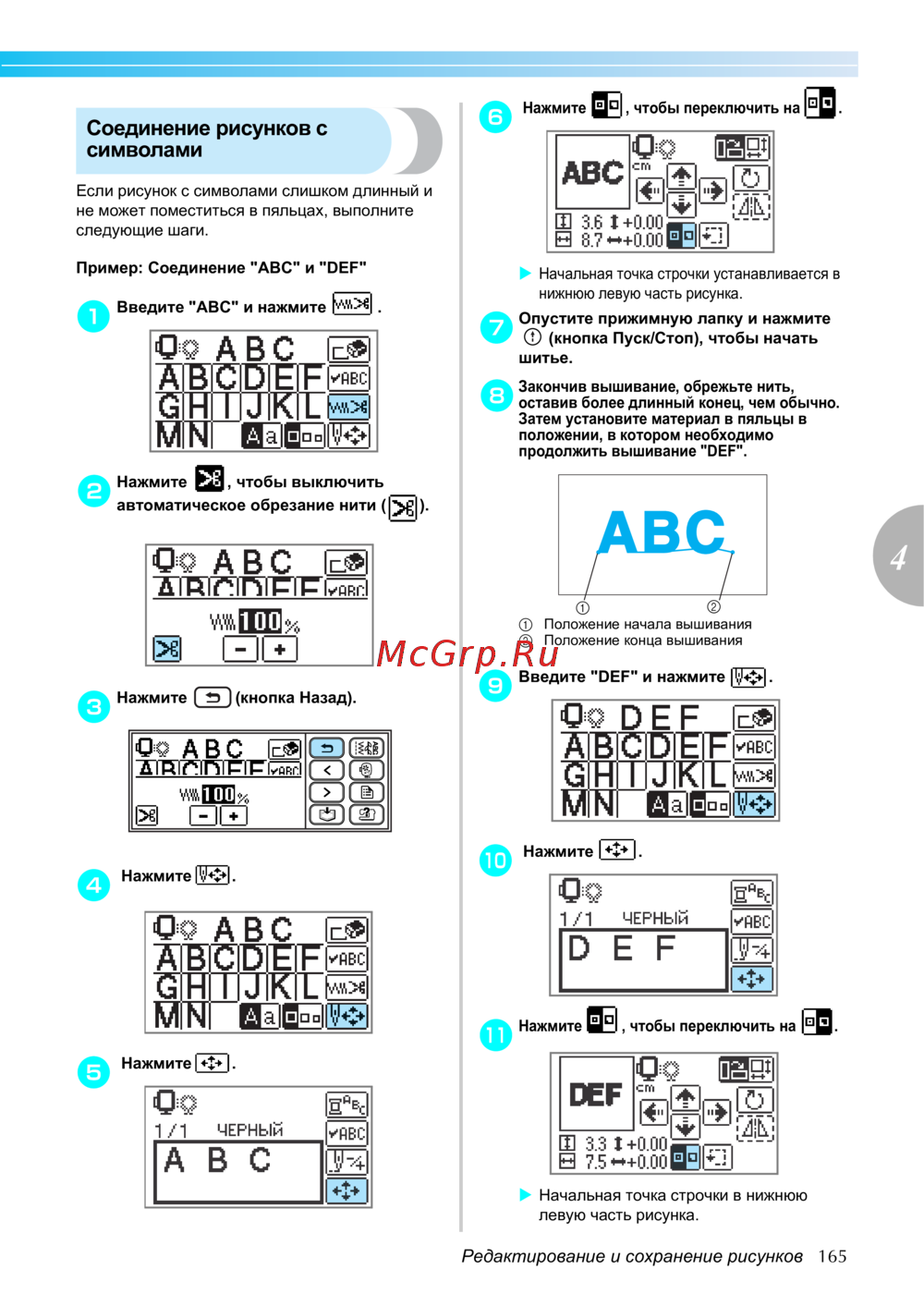 Brother NV 950 E [167/196] Соединение рисунков с символами