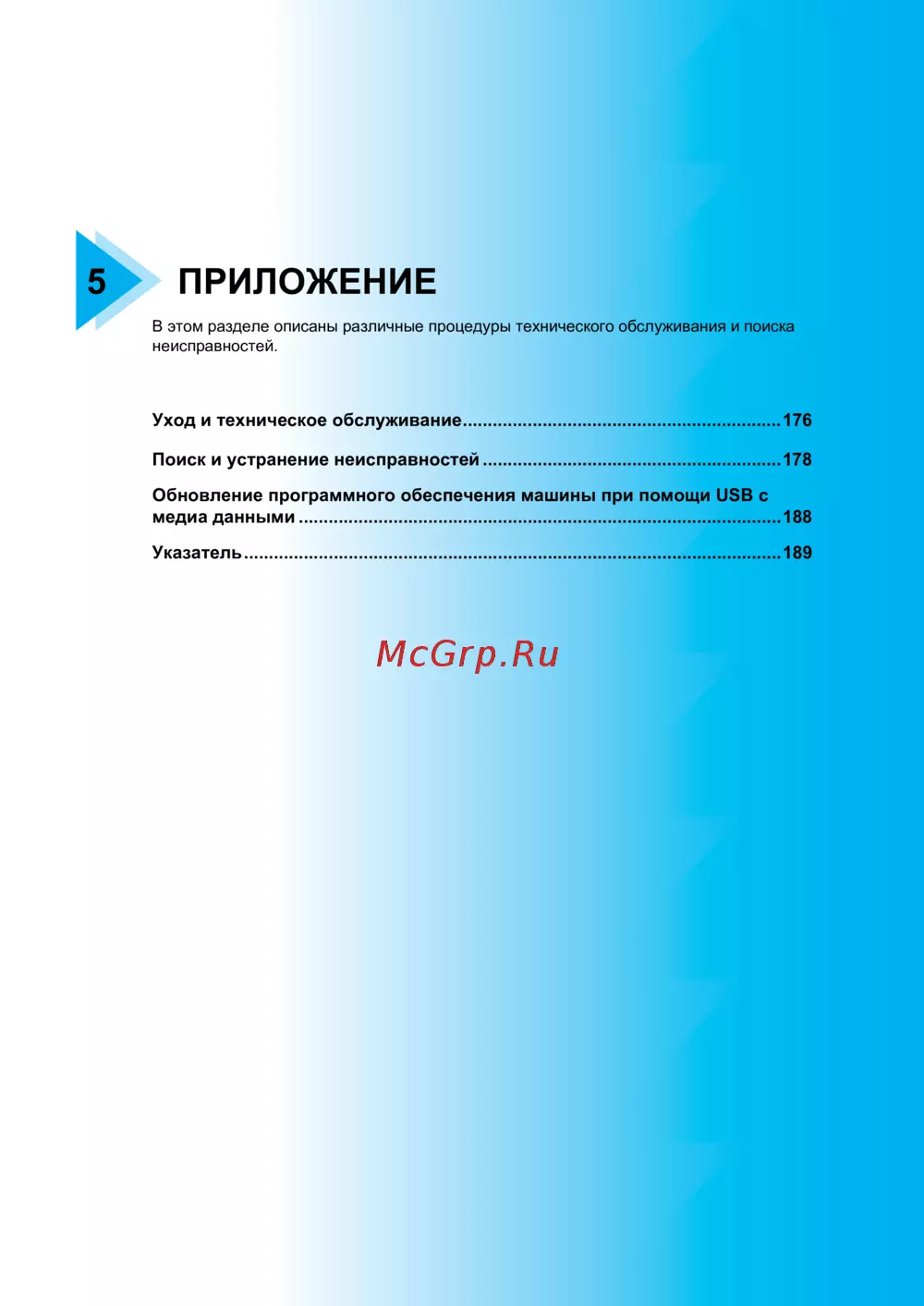 - Обновление программного обеспечения машины при помощи usb с медиа данными 188 p.9