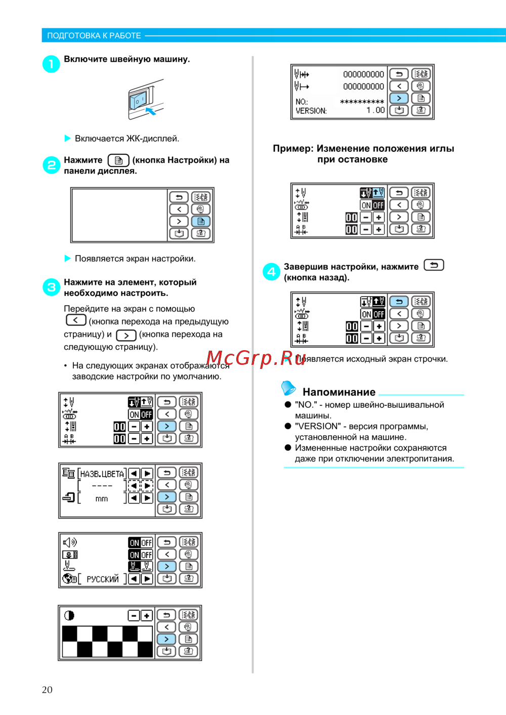 ![Brother NV 950 E [22/196] Пример изменение положения иглы при остановке](/views2/2006274/page22/bg16.png)