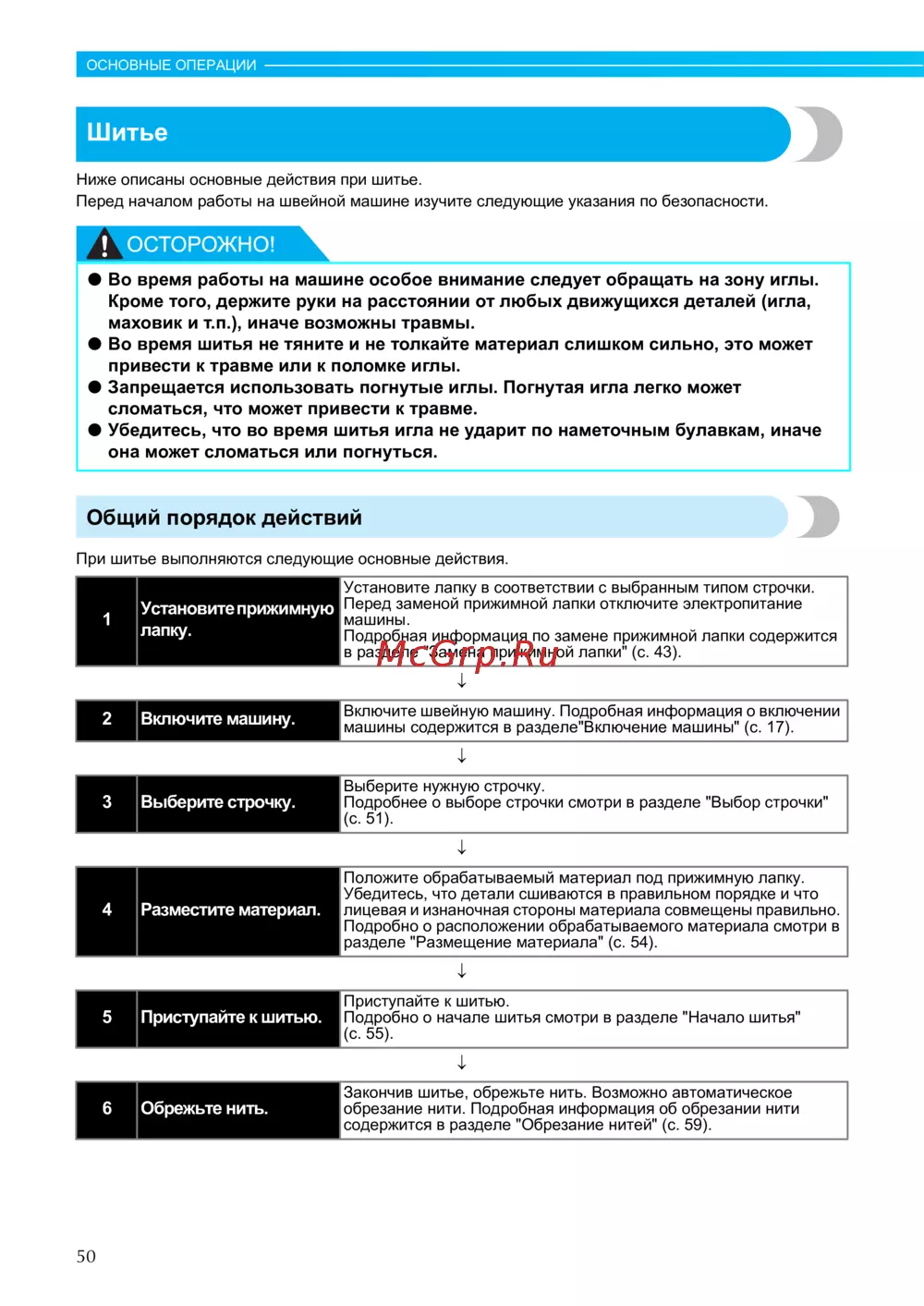 - Убедитесь в том чтобы игла была поднята во время движения пялец если игла будет находиться внизу она может сломаться и стать причиной травм p.159