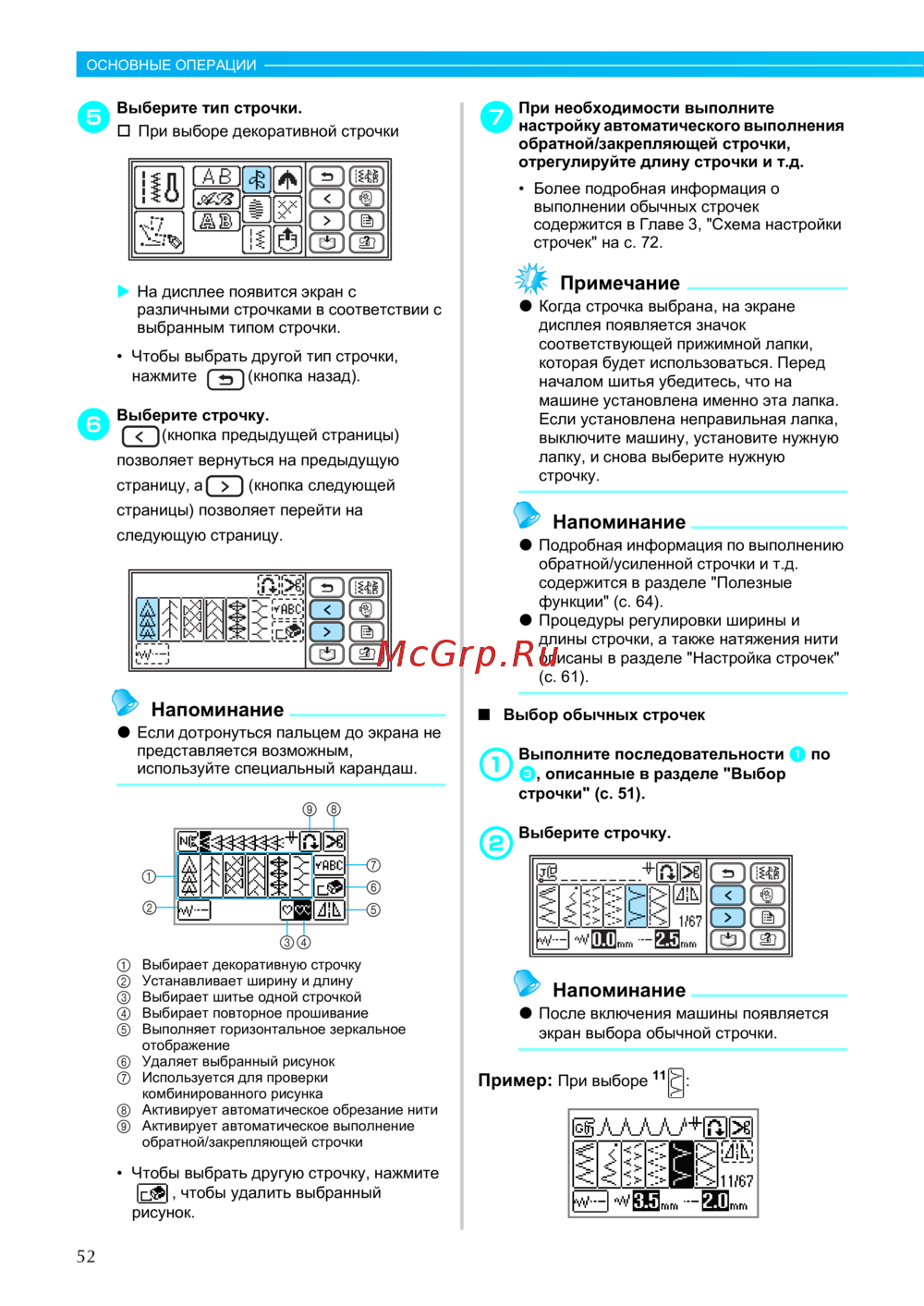 - Используйте пяльцы соответствующие размеру рисунка вышивки в противном случае прижимная лапка может задевать пяльцы что может привести к ранениям или повреждению иглы p.161