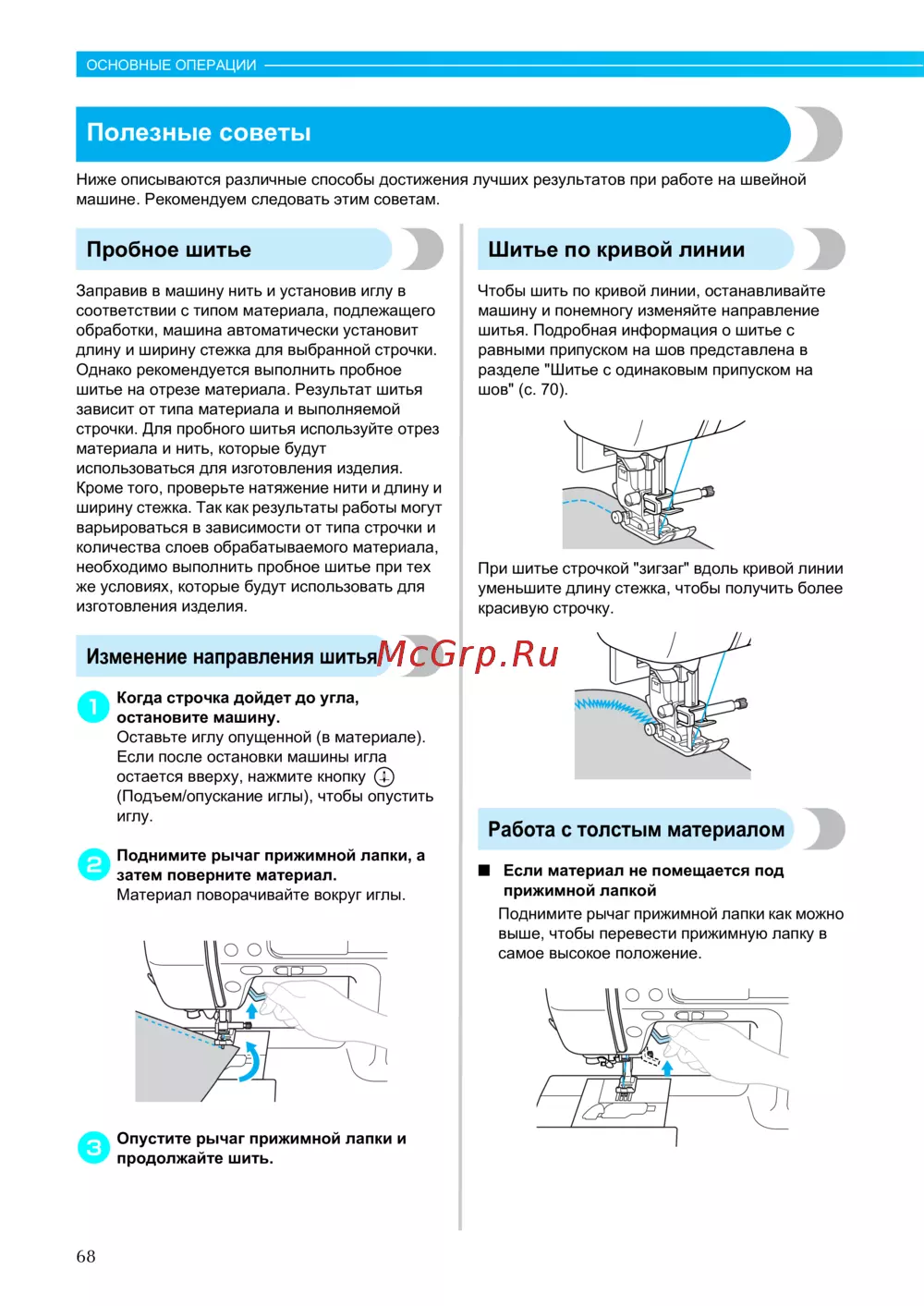 Ниже описываются различные способы достижения лучших результатов при работе на швейной