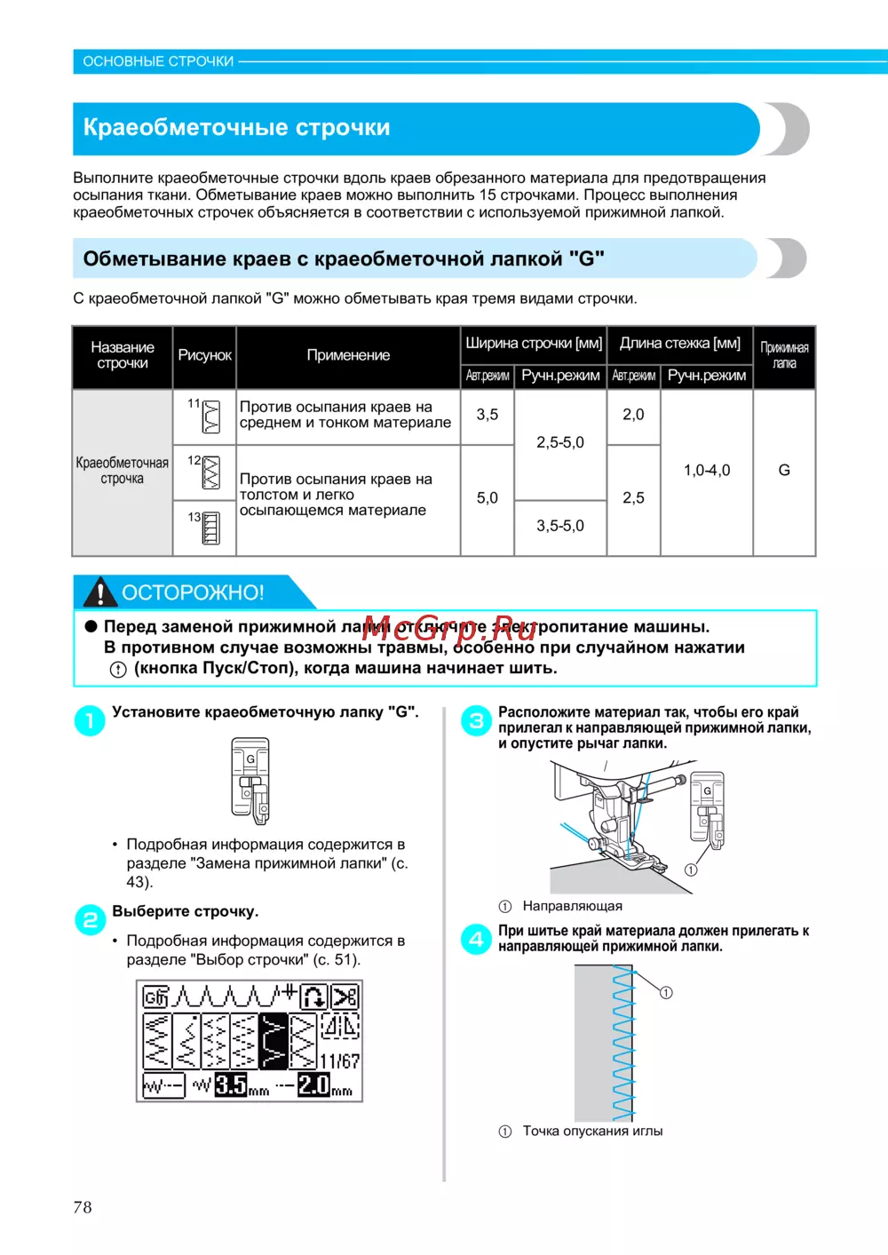 краеобметочных строчек объясняется в соответствии с используемой прижимной лапкой.