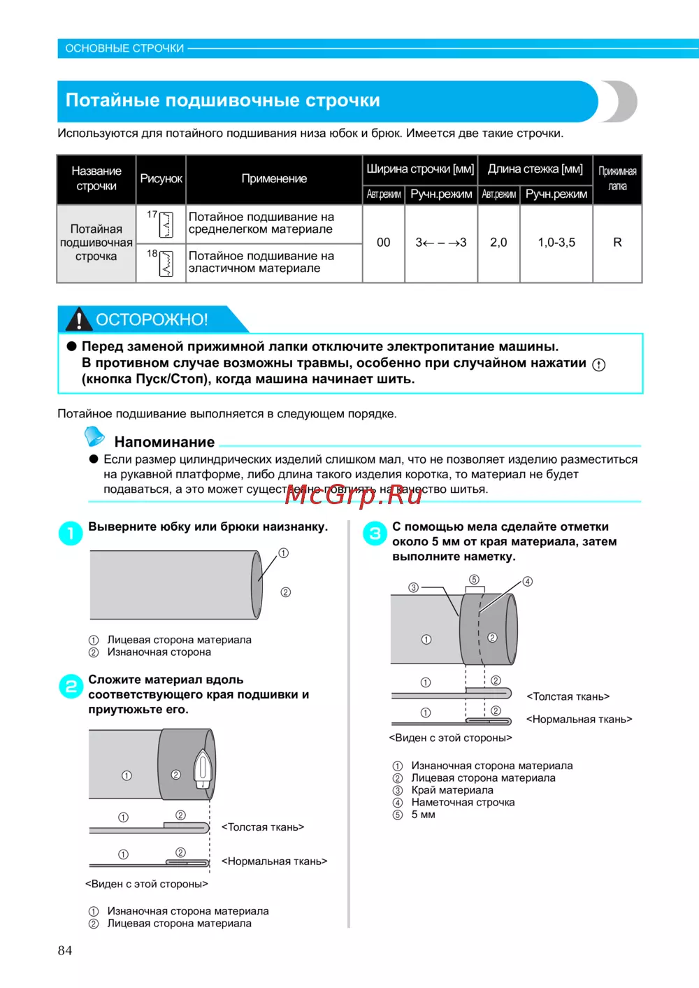 Brother NV 950 E [86/196] Потайные подшивочные строчки
