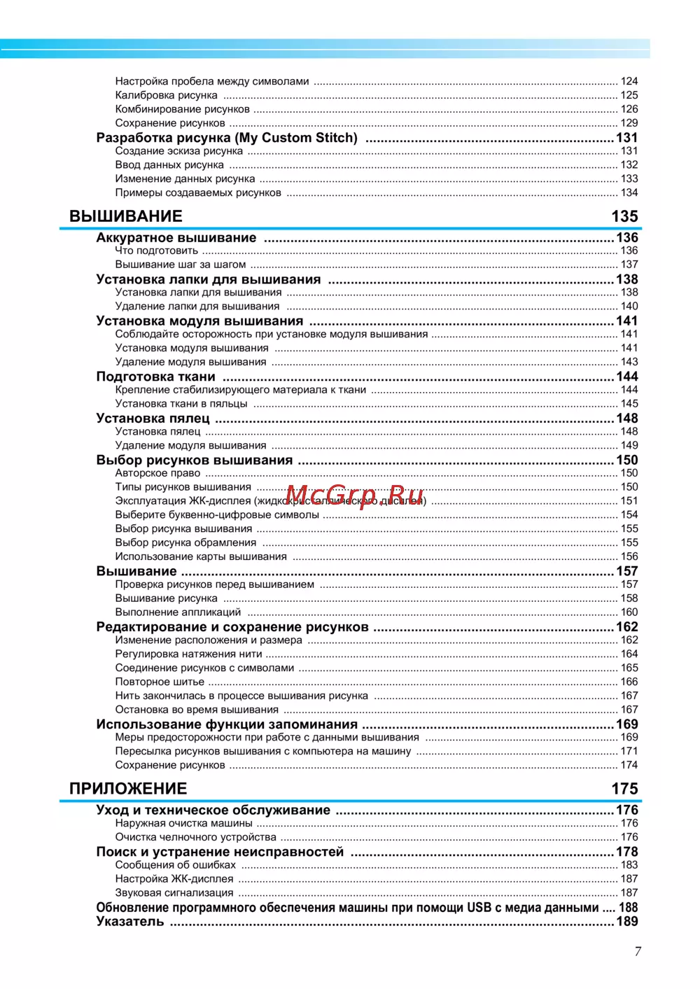 Меры предосторожности при работе с данными вышивания ................................................................ 169