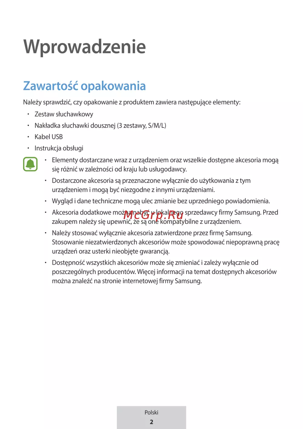 Samsung EO-BG950 U Flex (EO-BG950CWEGRU) [114/674] Zawartość opakowania