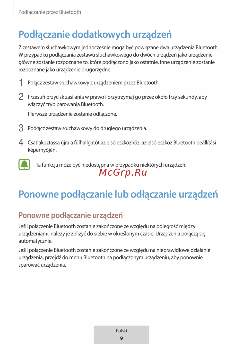 Samsung EO-BG950 U Flex (EO-BG950CWEGRU) [121/674] Ponowne podłączanie urządzeń