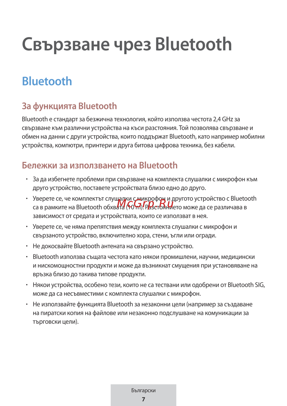 обмен на данни с други устройства, които поддържат Bluetooth, като например мобилни