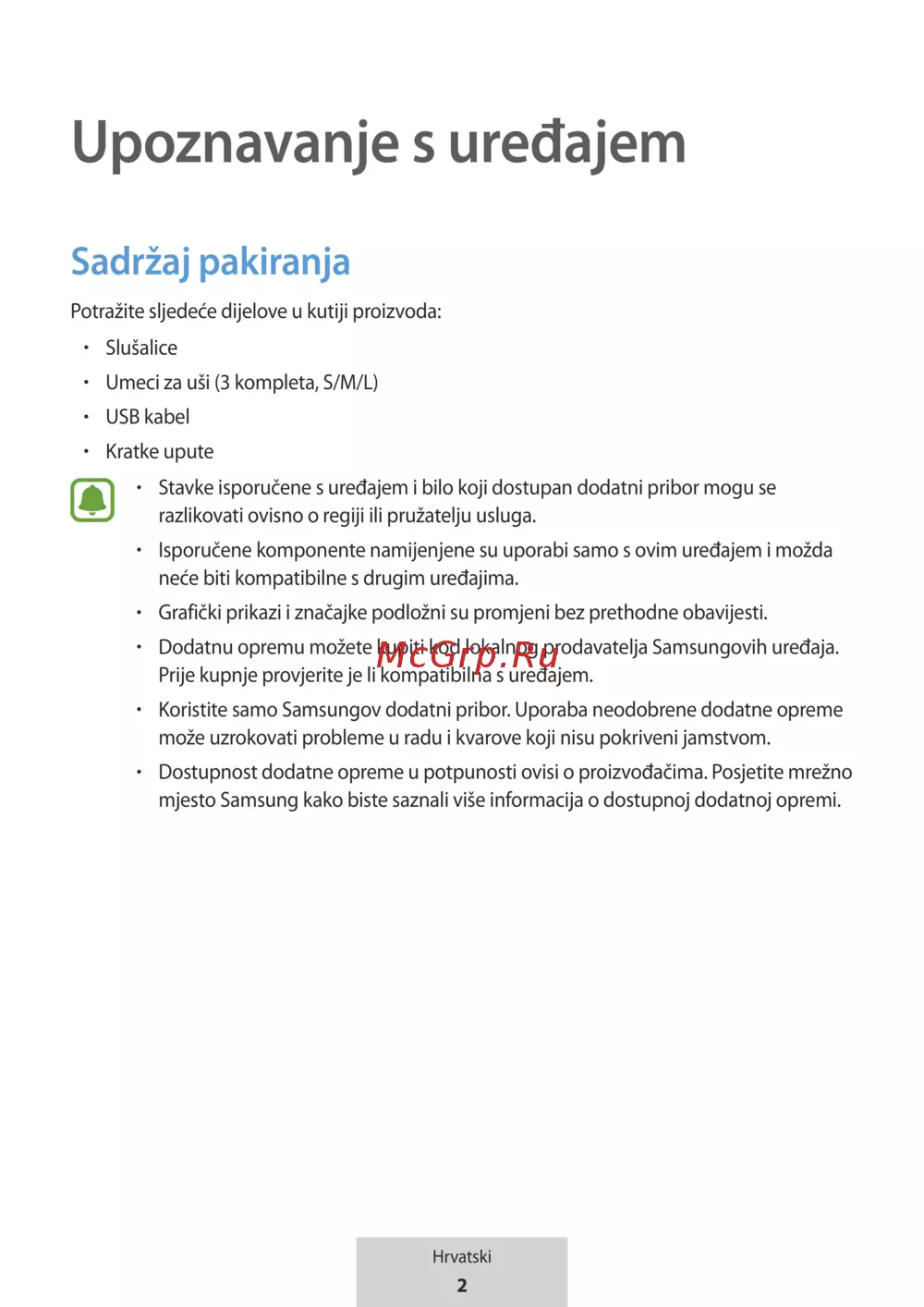 mjesto Samsung kako biste saznali više informacija o dostupnoj dodatnoj opremi.