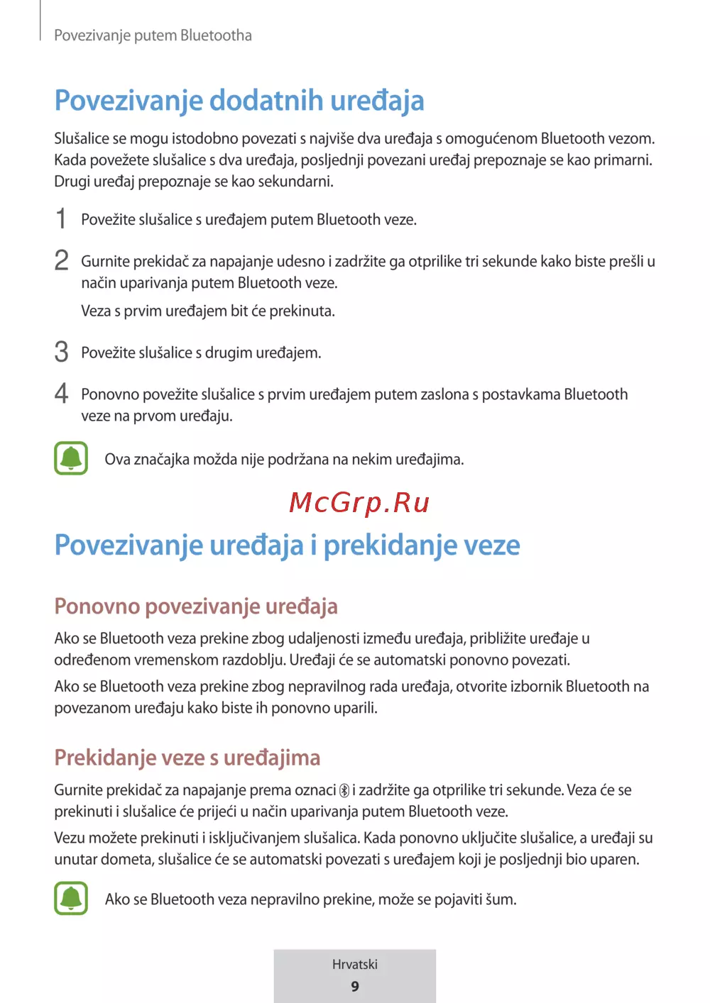 Slušalice se mogu istodobno povezati s najviše dva uređaja s omogućenom Bluetooth vezom.