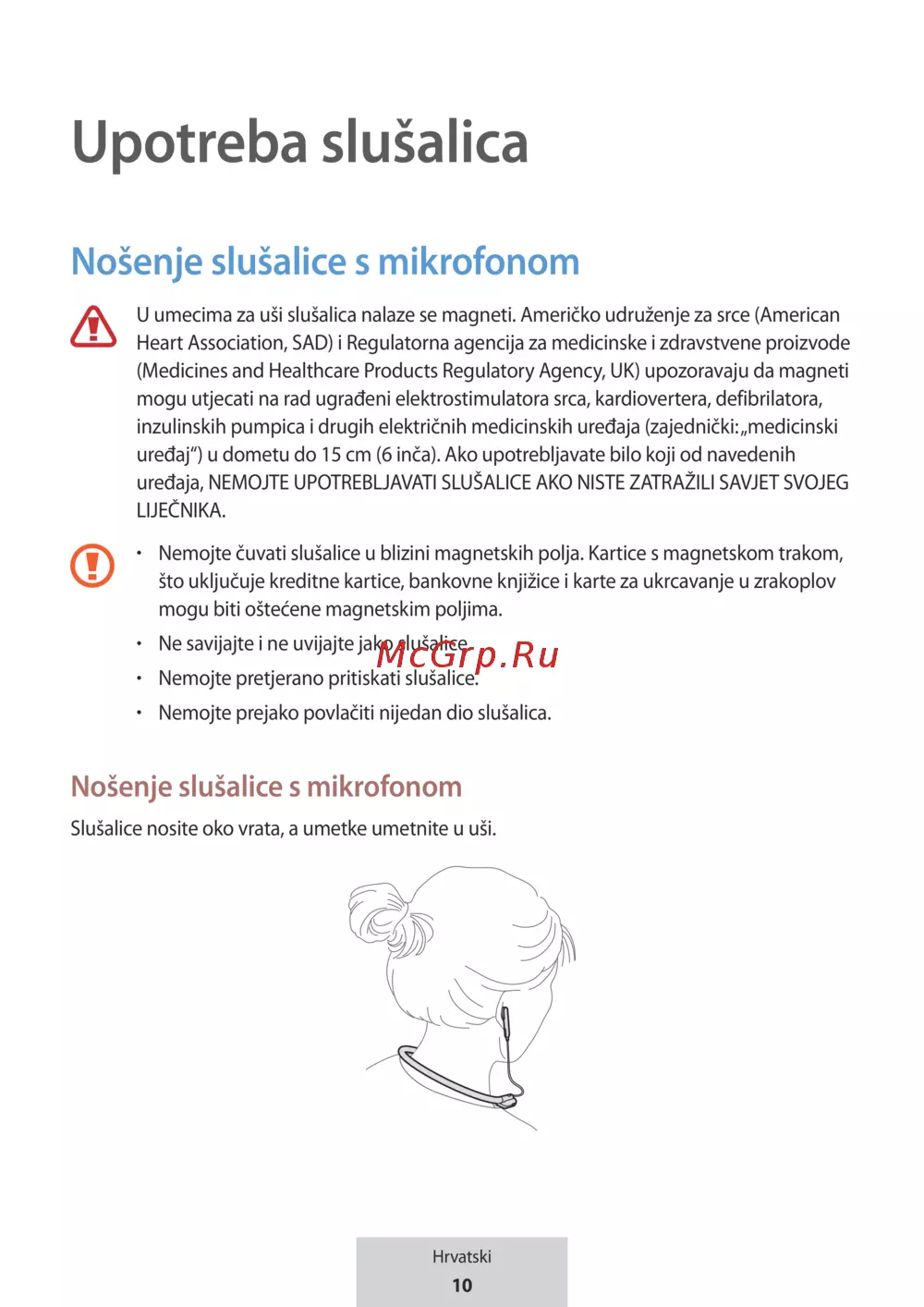 uređaja, NEMOJTE UPOTREBLJAVATI SLUŠALICE AKO NISTE ZATRAŽILI SAVJET SVOJEG